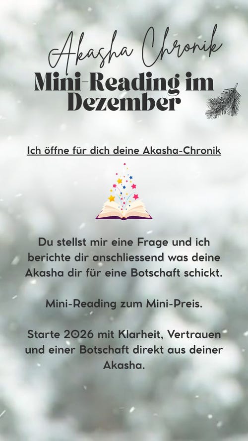 Wir vereinbaren dann einen Termin im Dezember, an dem ich für dich in deiner Akasha Chronik lesen darf. Du machst es dir dann einfach zuhause gemütlich und erhältst die Botschaft anschliessend ganz entspannt als WhatsApp-Sprachnachricht von mir.